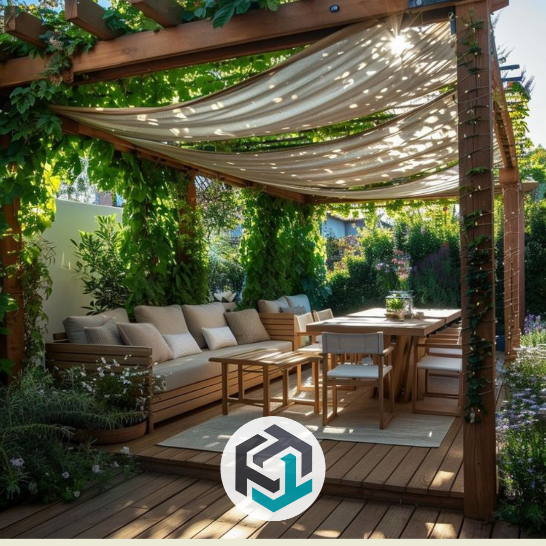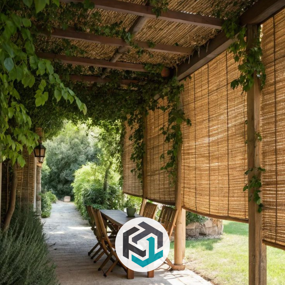 Naturalne zadaszenie z pnączy (winorośl, glicynia, bluszcz) tworzy przyjemny cień i wyjątkowy klimat. To idealna opcja dla miłośników ogrodów w stylu rustykalnym i boho.