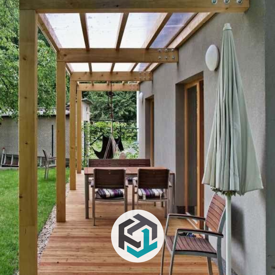 Solidne, drewniane zadaszenie daje większą osłonę przed słońcem i opadami. Możliwe jest wykonanie pełnego deskowania lub systemu lameli.